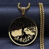 Yggdrasil Tree of Life Nerezový náhrdelník Přívěsek Kompas Viking keltský severský rodokmen Rune šperky