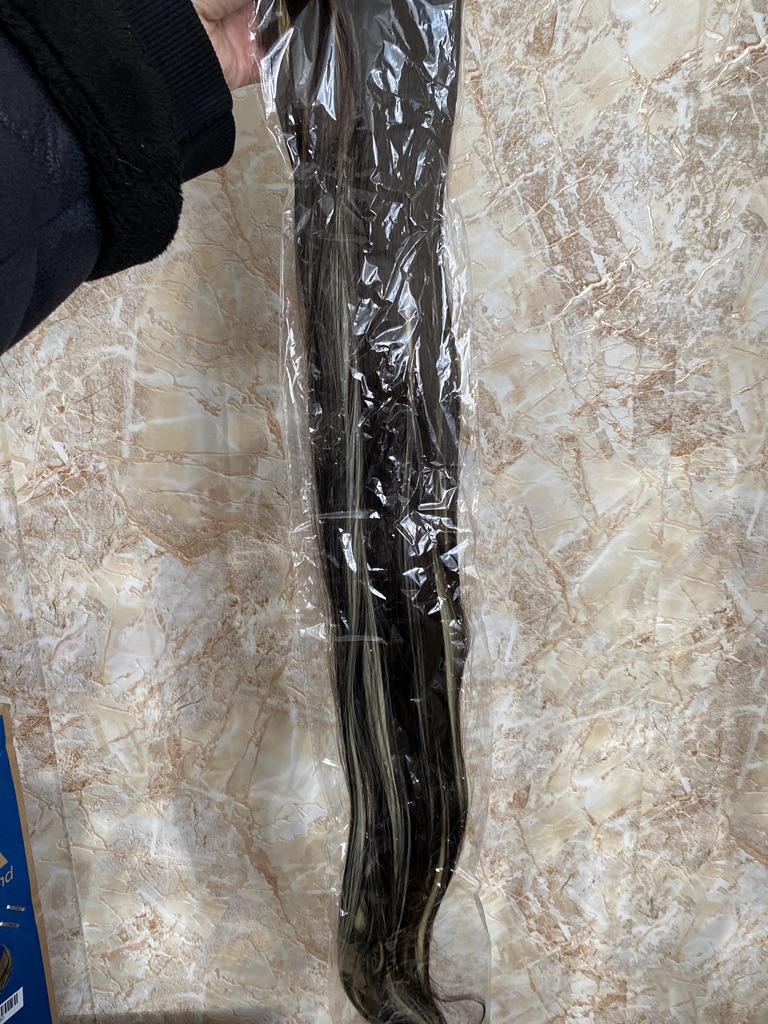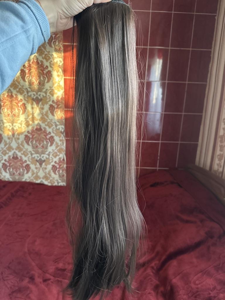 Dobrý den! Konečně dorazil, jako vždy včas. !, Všechny nákupy byly sloučeny do jednoho, což je dobrá zpráva! Ocas je jako na fotce. Vypadá jako přírodní vlasy, příjemné na dotek. Délka odpovídá slibované. Měkké, vlnité. Mám to s prameny, světlé tóny na tmavé. Velmi přijatelná cena. Doporučuji všem, kteří jsou rádi různorodí a občas změní image. Doporučuji všem, holkám, ženám, sluší všem! Loučím se, podívejte se na fotku. Mír do vašeho domova, krásu a hodně štěstí ve všem!!!