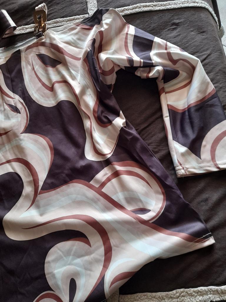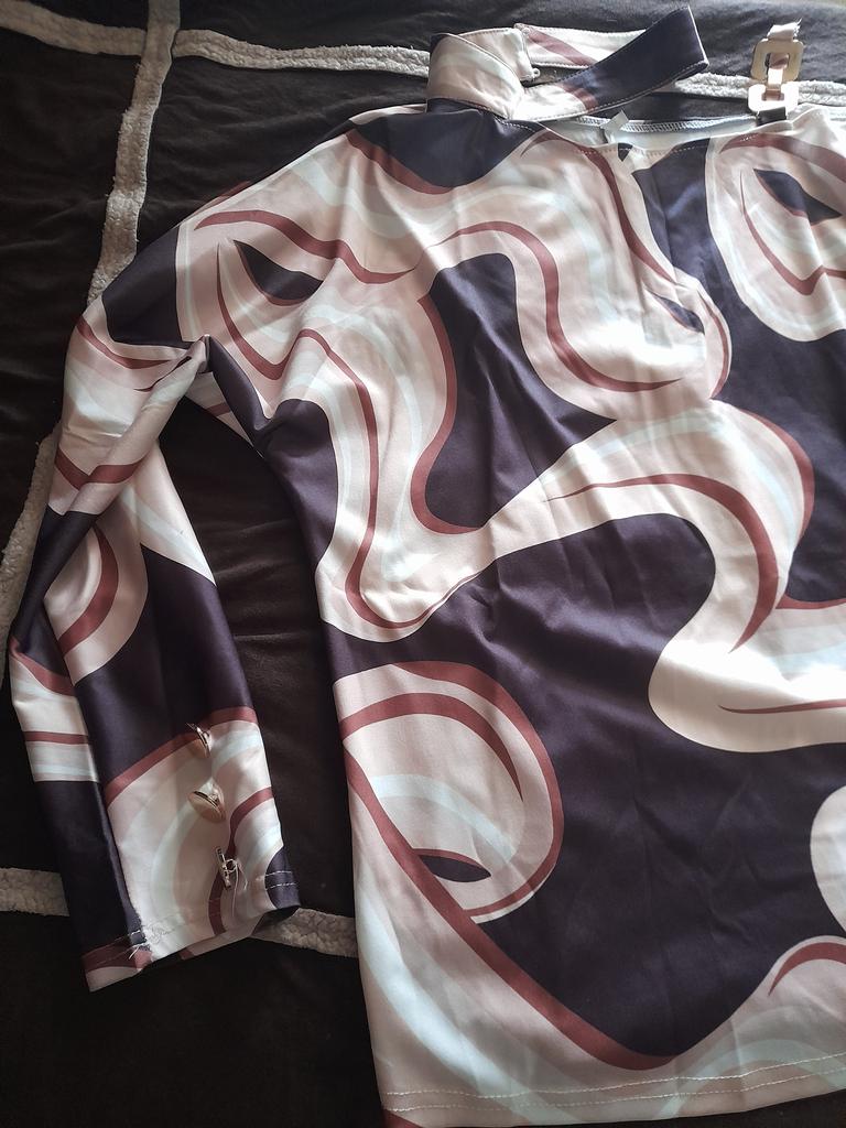 Velmi stylové a šik zároveň...na velikost jsem si vzala o číslo větší, protože jsem nechtěla, aby se mi lepila a je perfektní😉modrá je skvostná, příjemná látka....