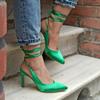 Dámská móda Lila Barva Saténové boty na podpatku se stahovací šňůrkou