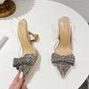 Eilyken Jarní křišťálové flitrované mašle stříbrné dámské lodičky nízké vysoké podpatky PVC průhledné sandály párty svatba plesové boty