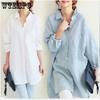Dámská košile střední délky na jaře a na podzim z bavlny a lnu