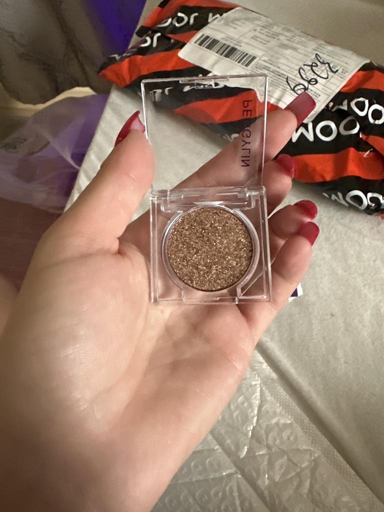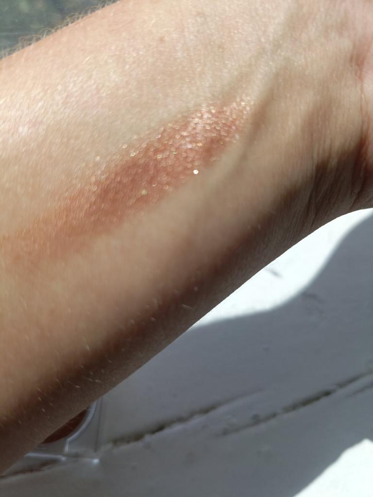 lesklý, pigmentovaný, na pleti má velmi pěkný třpytivý efekt