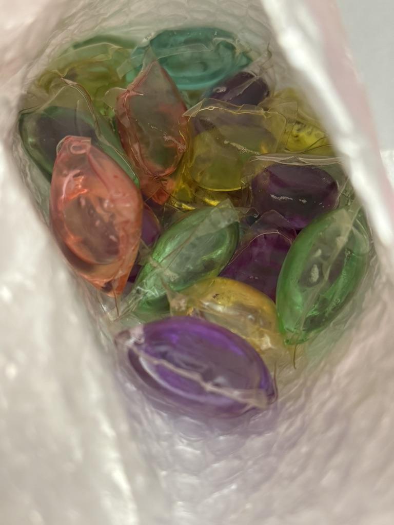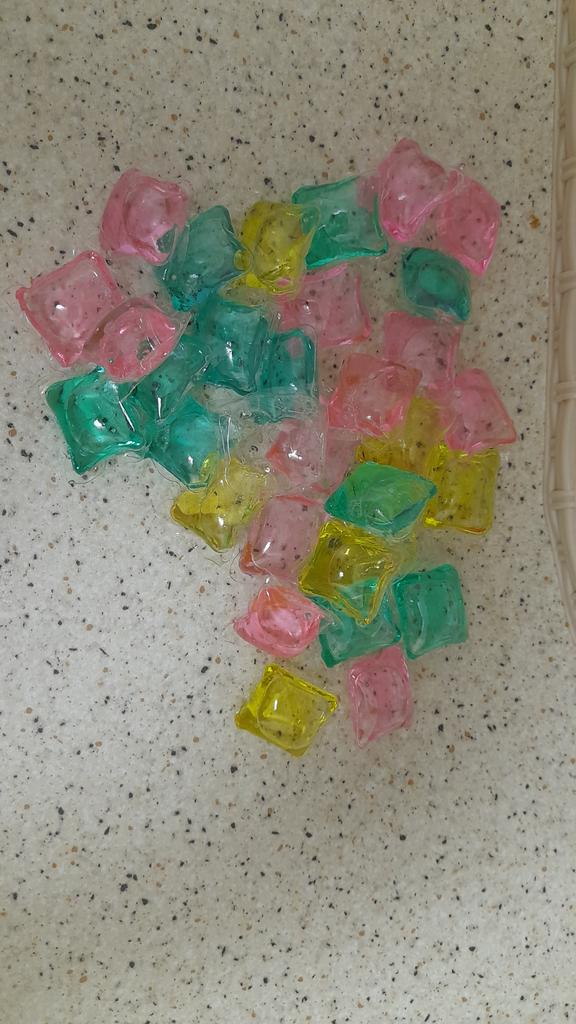 1 praskla, gel vytekl, na vyprání potřebujete 3 kusy, velmi malé, vůně je po vyprání příjemná