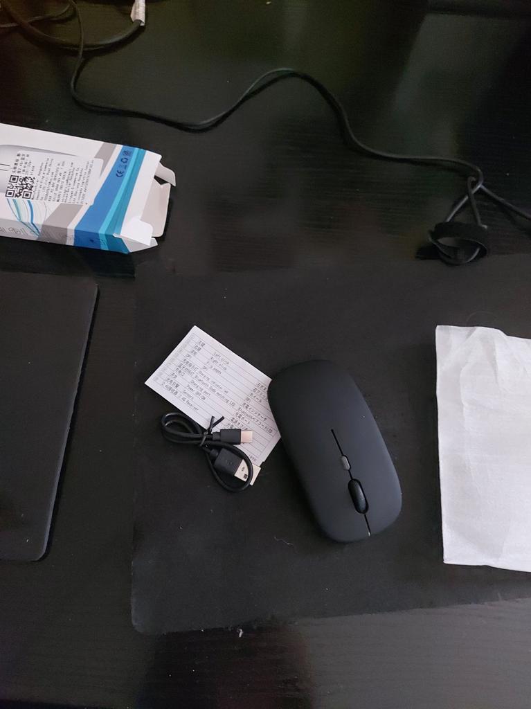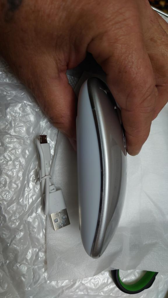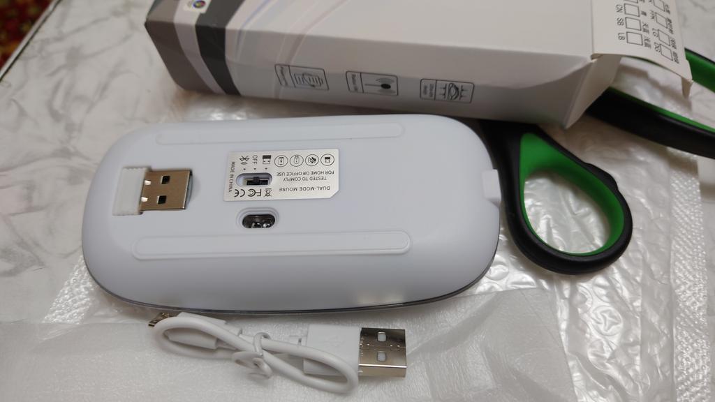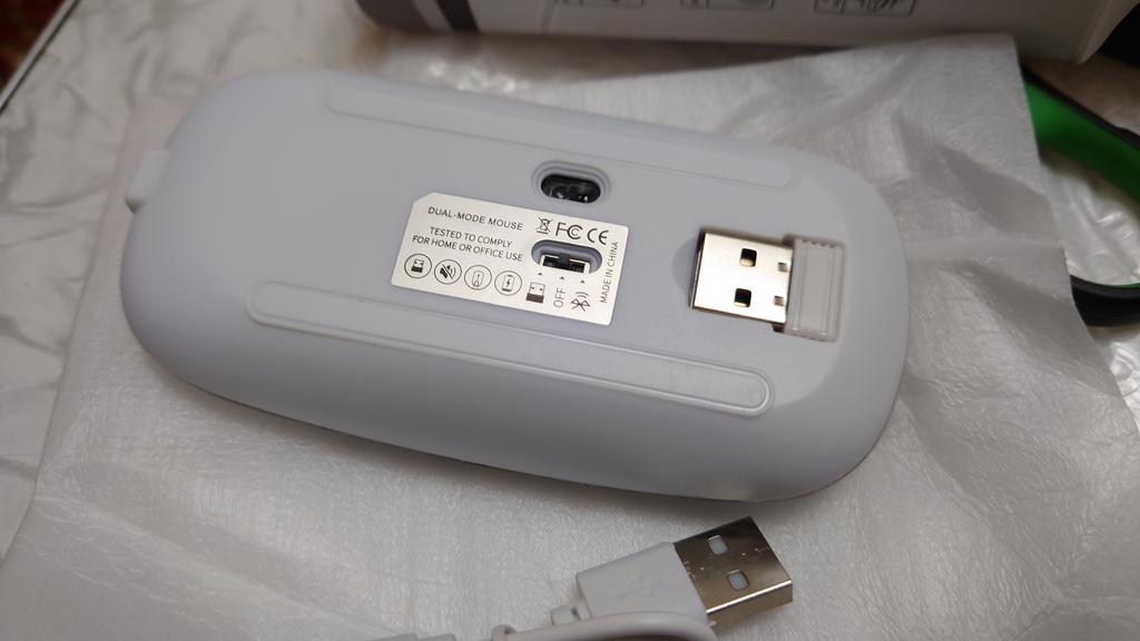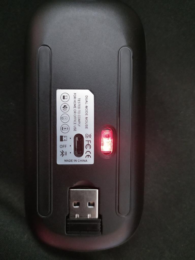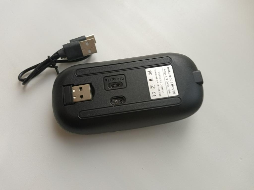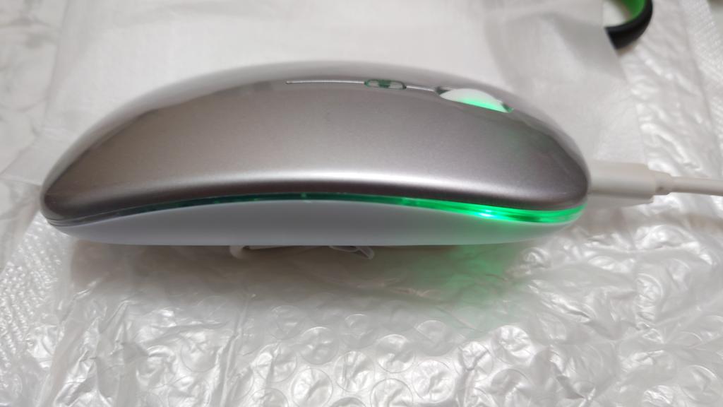 Moje dcera používá tuto myš 2 roky, žádné stížnosti, dala mé vnučce notebook, pak přidala velmi dobrou myš. Bluetooth adaptér a vestavěná baterie. Součástí je krátký nabíjecí kabel. Během nabíjení svítí zeleně (na obrázku) a během provozu mění barvy. Dobrá myš (pohodlná) a za takovou cenu