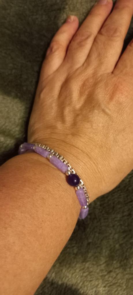 Náramek se stal jedním z mých nejoblíbenějších šperků, lehký, originální korálkový tvar, příjemná barva světlého lila ametystu.