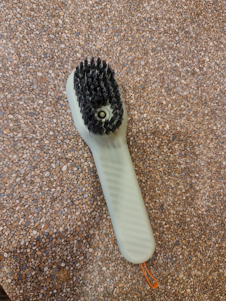 Dobrý kartáč na mytí bot Je tam otvor na mycí prostředek, je na něm připevněna gumová zátka, štětinky jsou pevné a dobře drží!👍💫⭐️💯🍂🪴🍁!