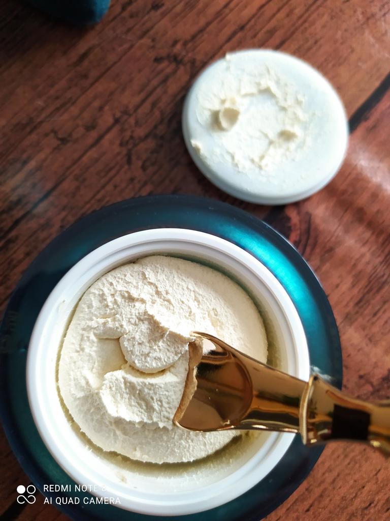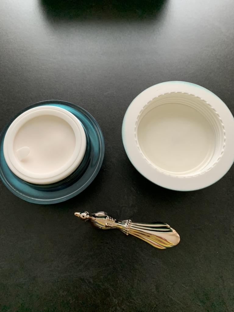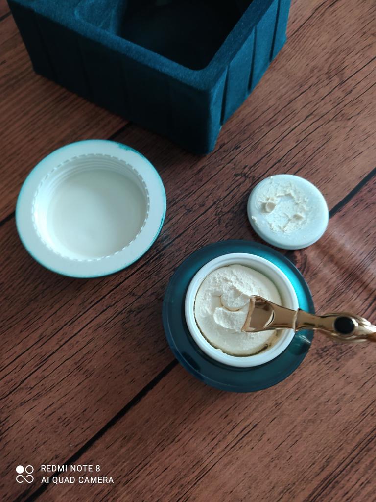 Zdravím všechny v tento horký pondělní večer. Dostal jsem svůj balíček. Mám z toho velkou, velkou radost! Tento krém za kvalitu a vzhled ode mě získává 10 bodů! Už jsem to vyzkoušel a nyní mohu dát recenzi na základě svých zkušeností. Krém se velmi rychle vstřebává do pokožky, není parfemovaný a není třeba ho používat příliš mnoho. Stačí kousek na špičku prstu a jemně vklepejte do pokožky obličeje, vyhněte se pokožce kolem očí. A pokud jde o tento krém, další věc je, že je dodáván v roztomilé malé krabičce, která má nahoře lžičku pro dávkování množství, které potřebujeme.