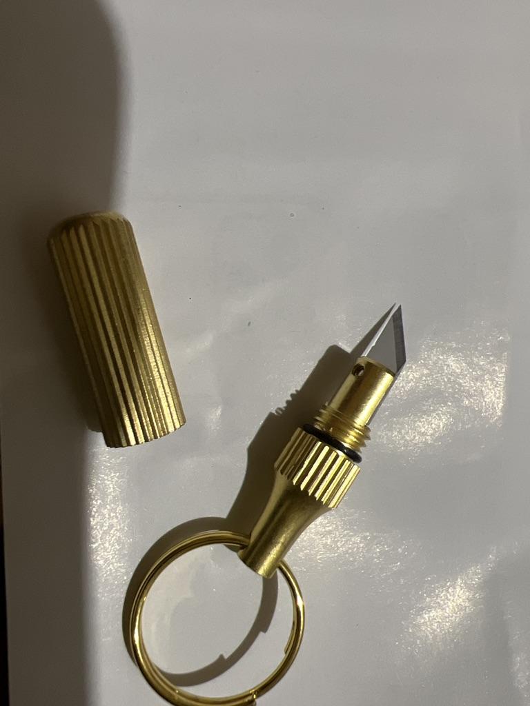 Zajímavá vychytávka, užitečná pro řezání fólie z multibalení. Poskytněte možnost zakoupit další čepele. Samotný patent je super, můžete si ho připevnit na klíče. Malý a šikovný.