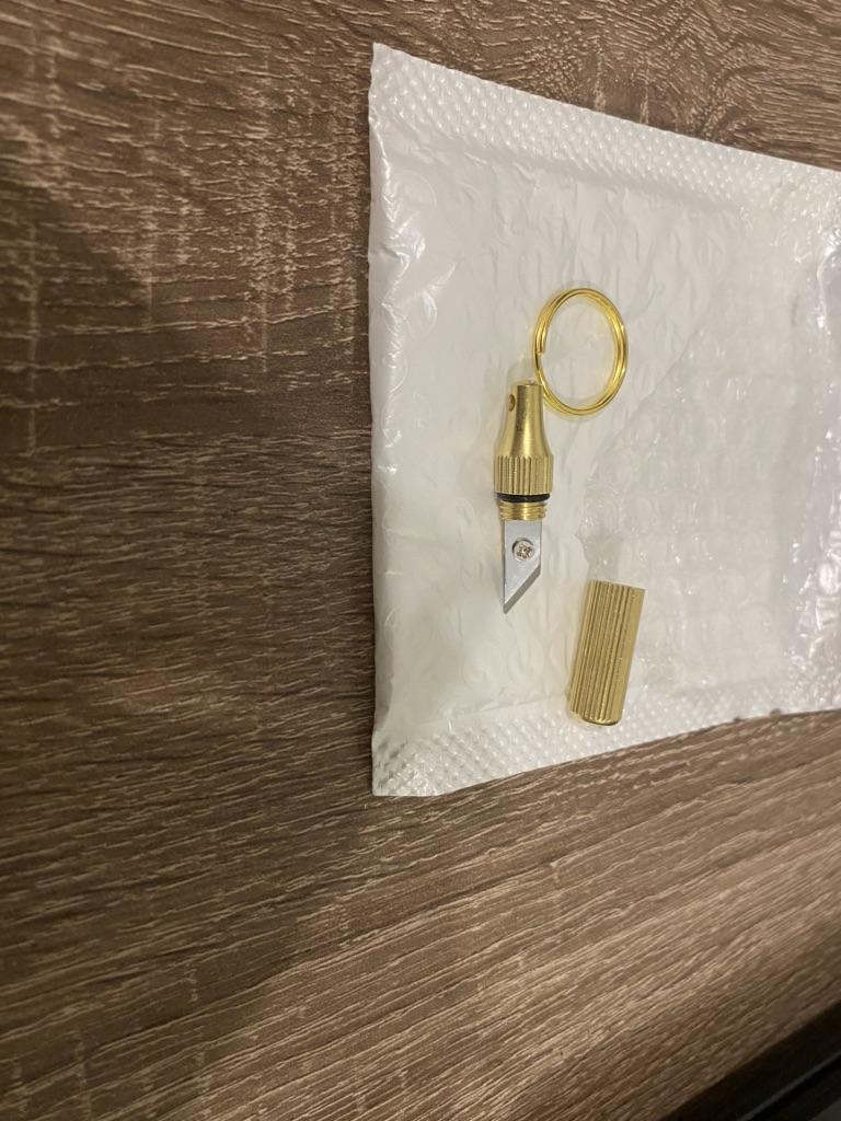 Objednal jsem si ho 10. září, vyzvedl na poště 9. října. Kyjev. Ostrý, kompaktní nůž. Připevnil jsem si ho ke klíčům a nosil ho s sebou. radím
