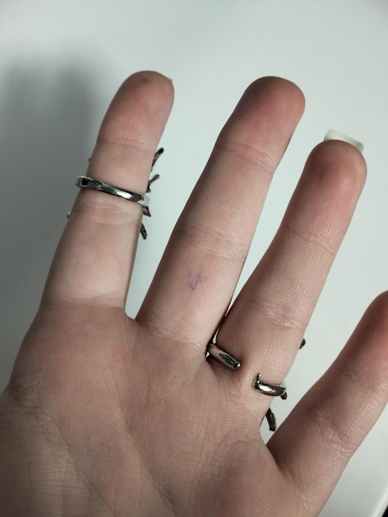 Mám velkou tlapku, takže prstýnky se dají nosit jen takhle, ale jsou dobře nastavitelné! Můžete je klidně ohýbat, protože jsou celé z kovu (některé prsteny jsou z vosku, na který se nanáší kov, takže se mohou snadno zlomit), ale tyhle jsou super!