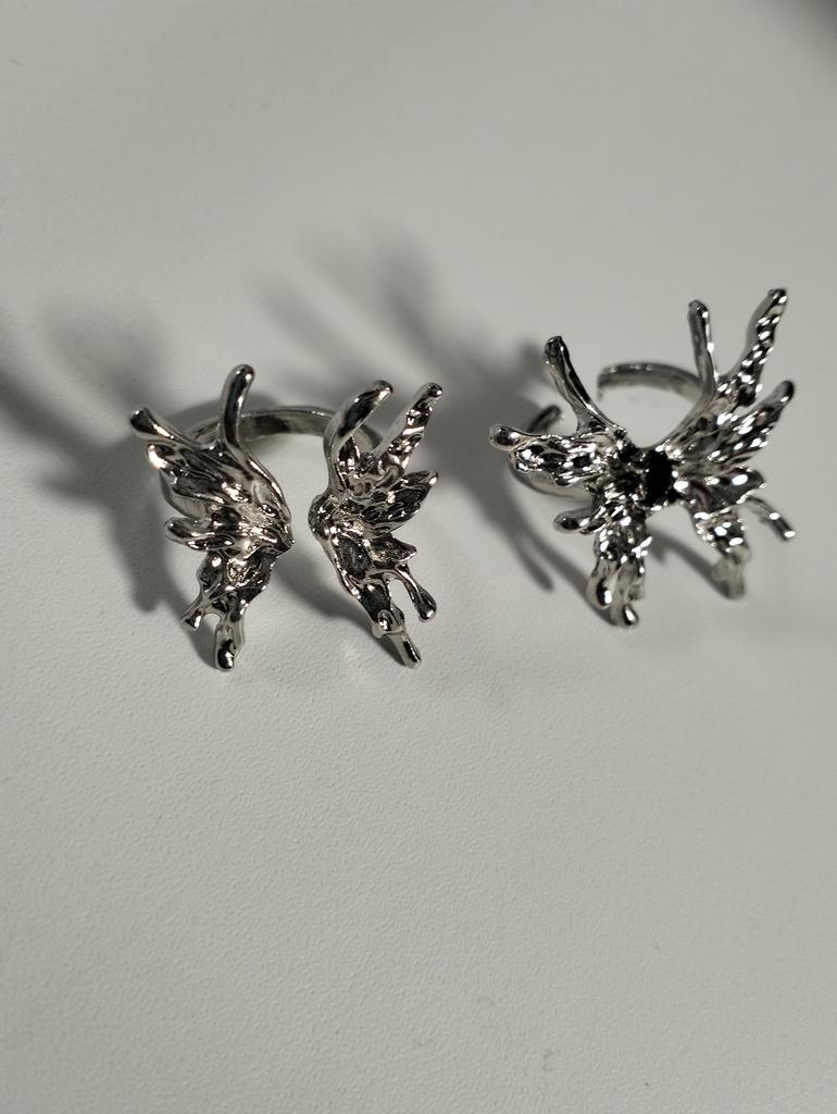 Punk Liquid Butterfly Otevřené prsteny Nastavitelné Dámské prsteny Módní Vintage Kovový prsten pro pár Gotické Přehnané šperky
