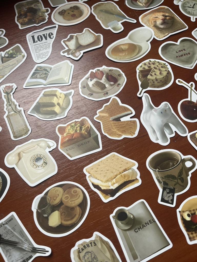 50ks Good Morning Food Stickers Kawaii Cat Decals Decor Notebook Lednička Telefon
