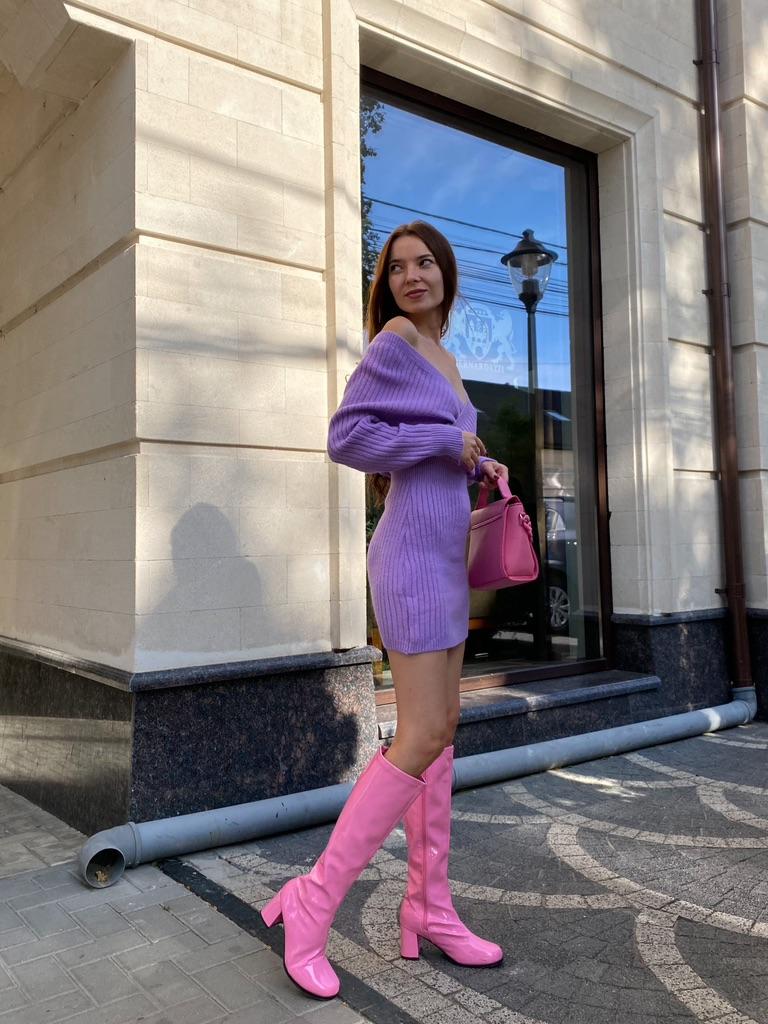 Zimní vlněné šaty. Zdůrazněte postavu! Velikost S Pro parametry 86-60-85, výška 167 seděla perfektně. Je krásná fialová barva; Materiál je velmi elastický. Délka je mini na výšku 167 . Délka rukávů je plná. Model je vhodný pro chladné dny. Vypadá velmi stylově. Kvalita je vynikající. líbí se mi to