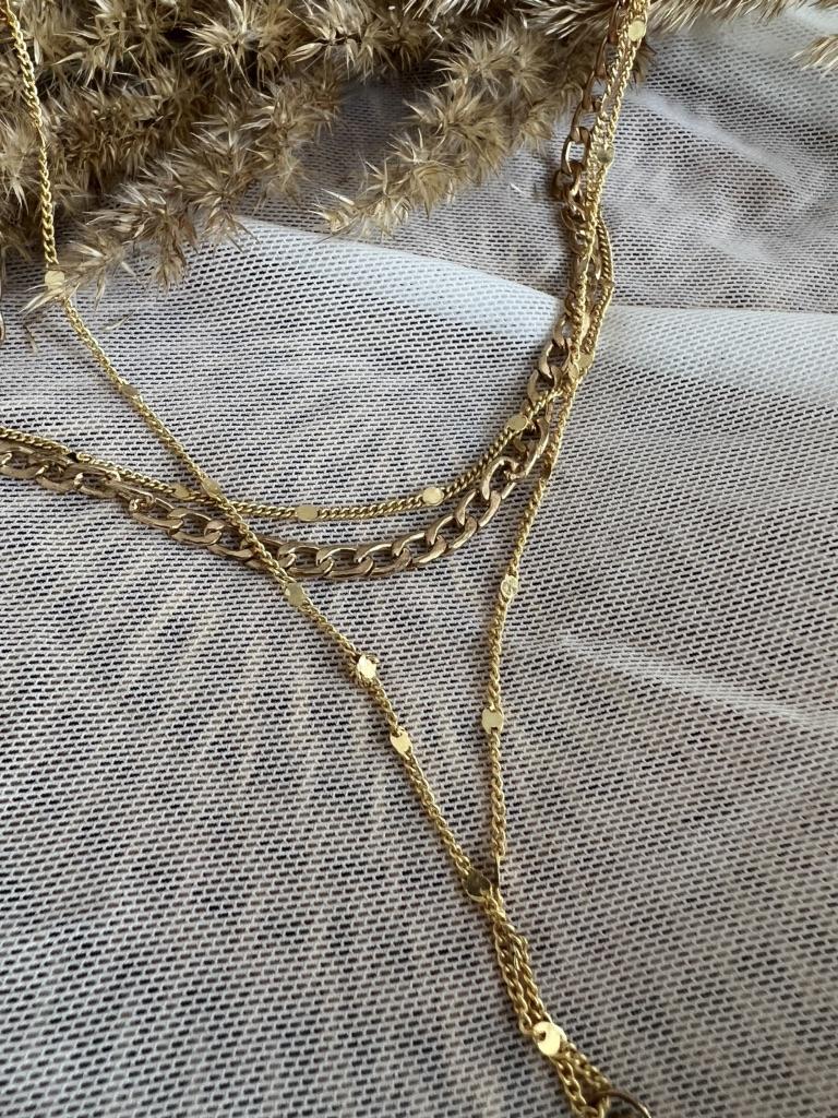 Dámský vrstvený řetízkový náhrdelník s flitry pozlacený náhrdelník jako doplněk šperků