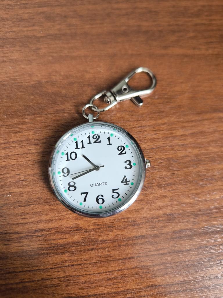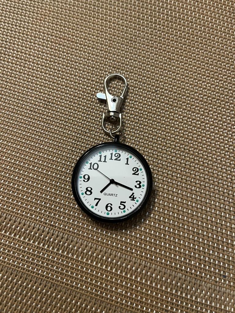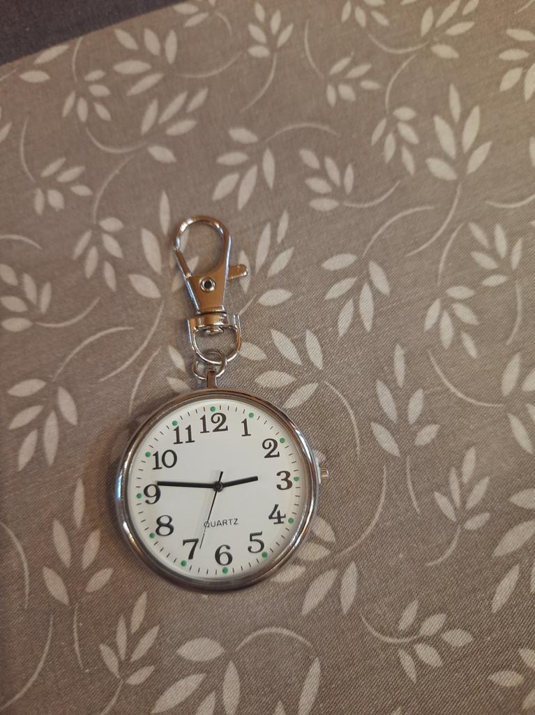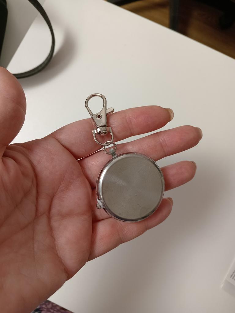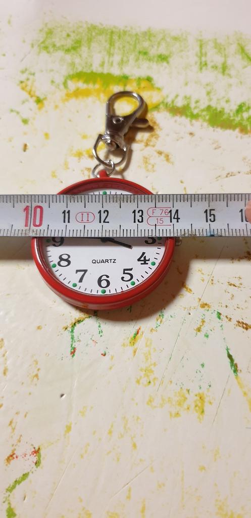 Hezké malé kapesní hodinky, které se připínají pomocí kroužku na klíče. 👍💞 Průměr je 4 cm a celková délka je 8,5 cm. 💐💝 Funguje perfektně a ukazuje přesný čas. ✌️🥰