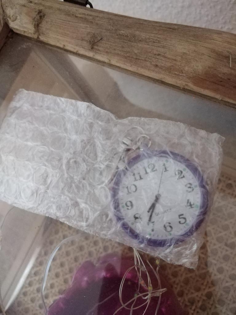 Všechno je v pořádku, ale tady je takové poškození u lepicích listů a ještě jsem nezkoušela, jak hodinky chodí.