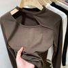 Early autumn long-sleeved T-shirt women's bottoming shirt with careful machine design sense of tight-fitting short hollow top