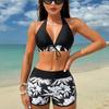 Díky designu s potiskem listů je tato souprava bikin velmi krásná, módní a poutavá. Díky designu luku budete vypadat sladší.