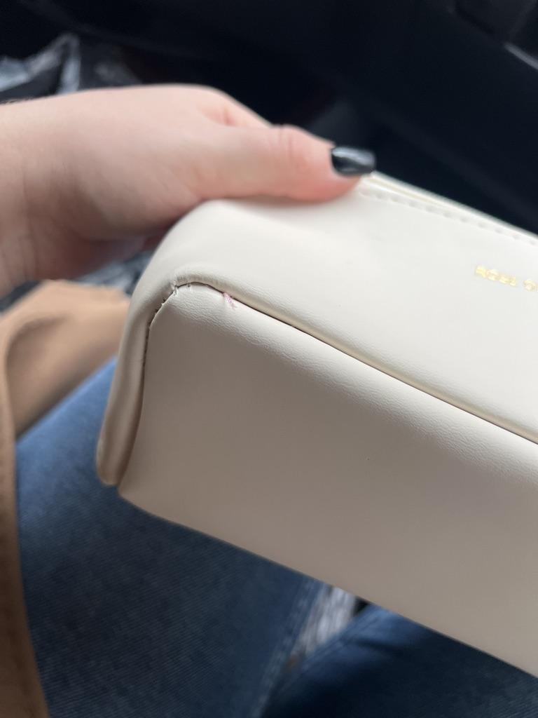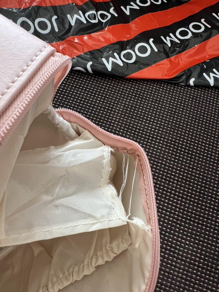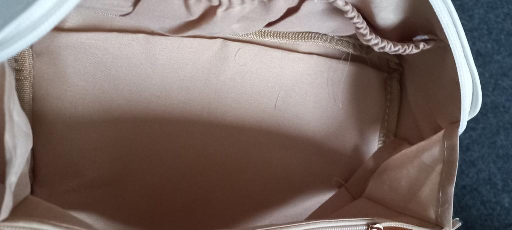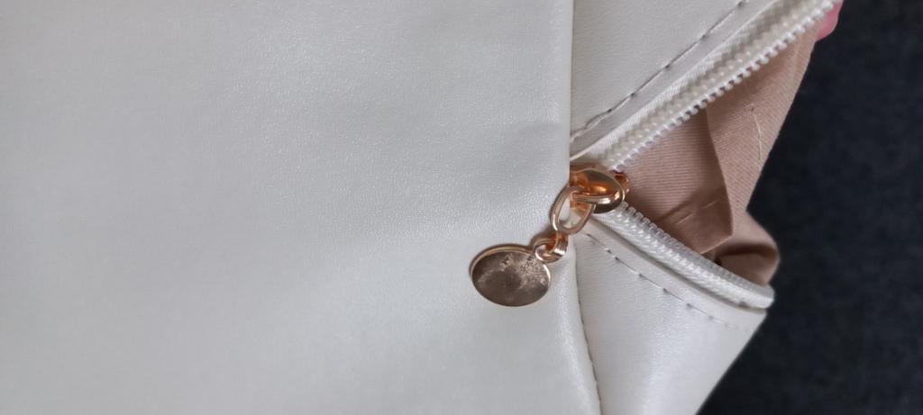 Materiál je velmi značkový. Dal jsem to do černé tašky, takže taštička na makeup měla černé skvrny.... I když vnitřek tašky není barvený. Také vše neustále vypadává z kosmetické taštičky, není to pohodlné provedení.