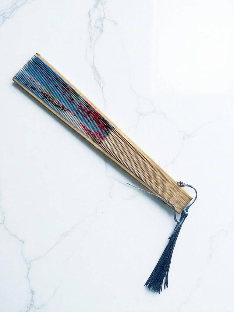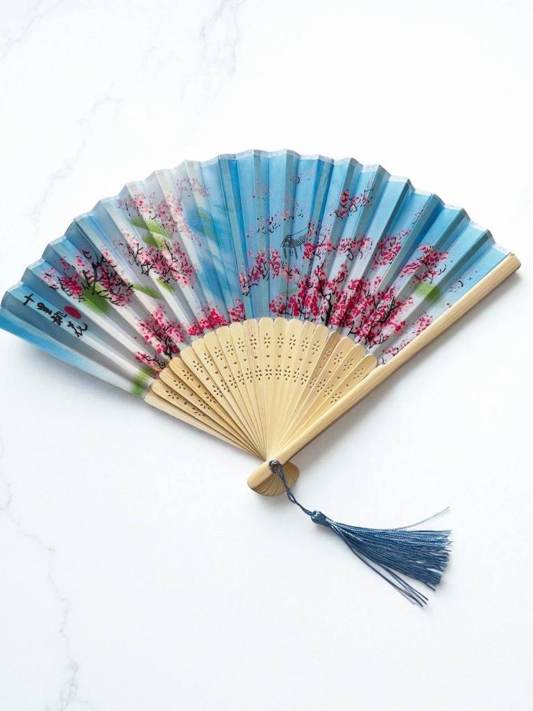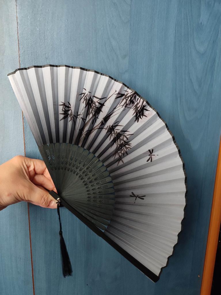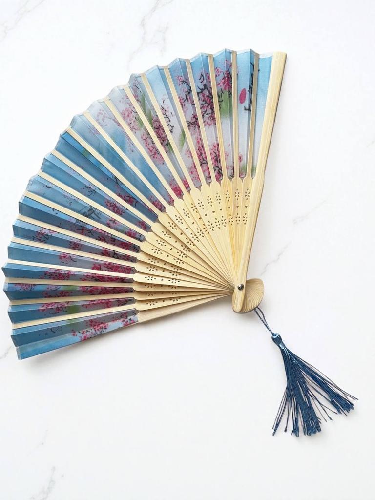1ks Vintage hedvábný skládací ventilátor Retro čínský japonský bambusový skládací ventilátor střapec Tanec Ruční ventilátor Domácí dekorace Ornament Řemeslný dárek