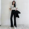 VANGULL Women's Spring and Summer Drape Cotton Casual Pants High Waist Slit Flared Pants