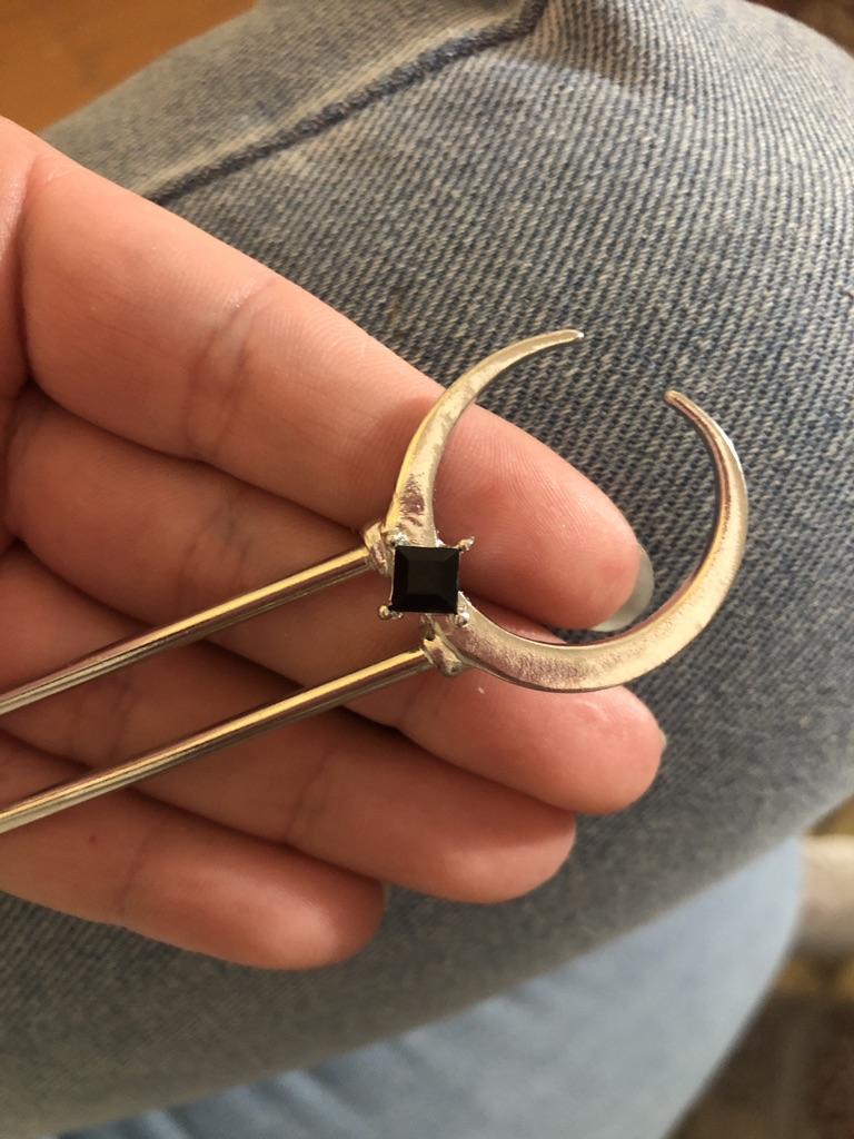 Myslím, že z fotky je to vidět, z dálky to vypadá ještě menší, ale když se podíváš pozorně, tak je vidět, že to nebylo udělané úhledně. Víceméně drží průměrnou tloušťku vlasů, ale myslím, že by se neměl brát na husté vlasy! Ještě dodám, že po páru nošení ponožek se zub začal viklat a drží slovo. Neberte to!