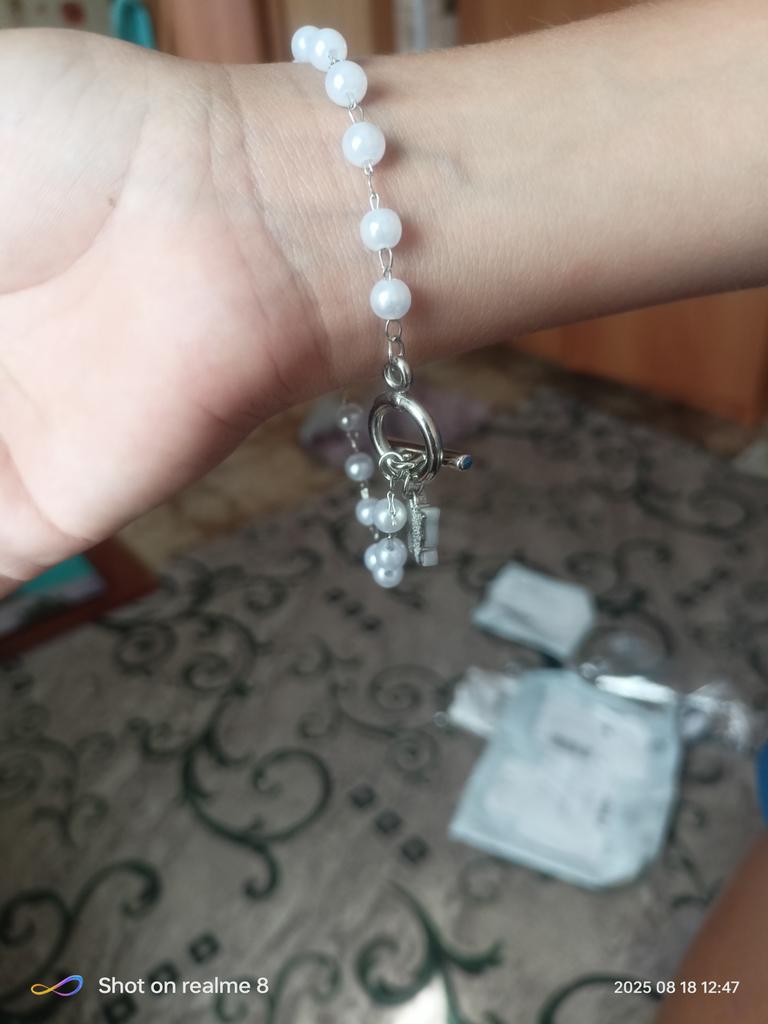 Náramek perfektně sedí, velmi krásný a jemný, neuvolňuje se, velmi příjemně se s ním chodí