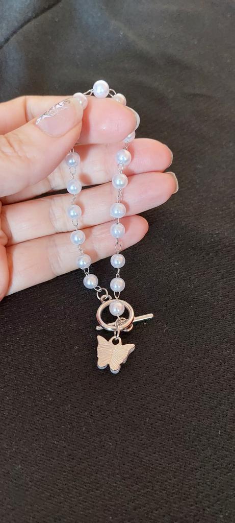 Motýlí náramek Sweet Resin Charms pro ženy Dívčí náramek s přívěskem z imitace perel na ruku Dárky pro přátelství
