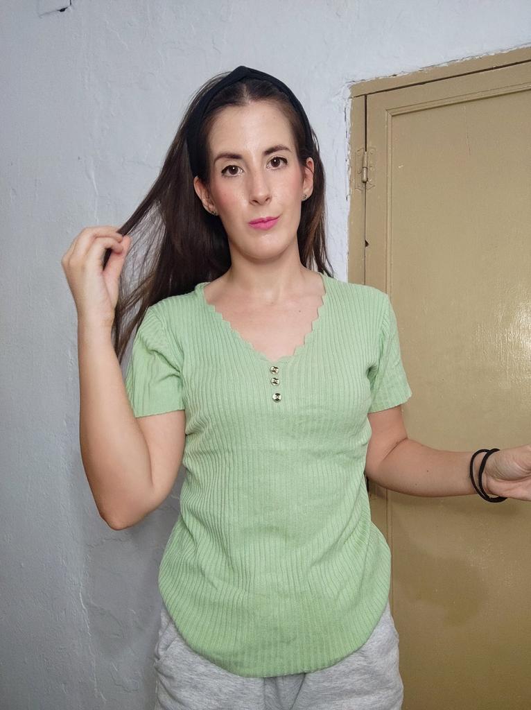*Tričko 💚 . Doba příjezdu do Španělska byla 15 dní dobře zabalené Velikost košile je M, na mé míry 88-67-92 je trochu velká, je světle zelená, má tři knoflíky, které jsou na ozdobu, nemají funkci. . Košile je cool, je jako nit, na krku má nějakou kulatost. 🌺 PŘÍJEMNÉ NAKUPOVÁNÍ 🌺