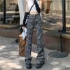 Podzimní trend streetwearu Maskáčové džíny s vysokým pasem Žena Cargo Kalhoty Rovné džíny Široká noha Baggy Kalhoty Ležérní džínové kalhoty