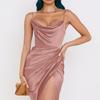 2023 Móda Saténové Elegantní Sexy Šaty Dámské Slim Sling Split Party Club Šaty S vysokým pasem Bodycon Šaty bez ramínek Vestido 24941