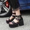 Gdgydh Platforma Robustní podpatky Dámské Sandály Přezka Pásek Otevřená špička Móda Ležérní Peep Toe Dámské Punkové sandály s dvojitým páskem