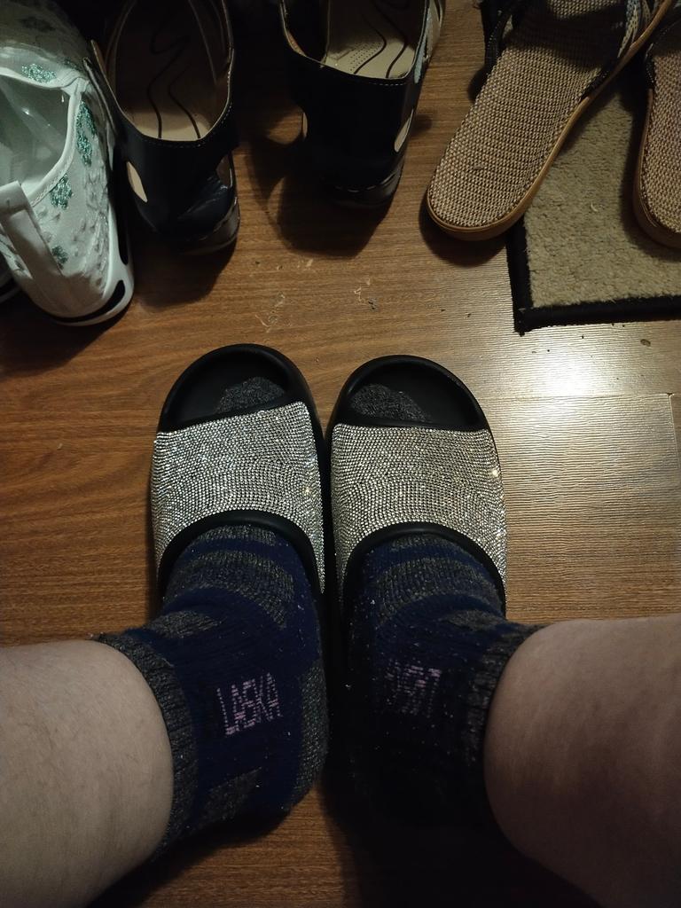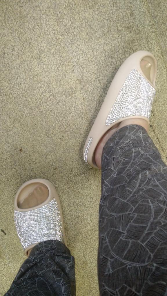 Žabky jsou roztomilé, tak akorát, jen škoda, že jsou úplně gumové⁰, nebýt třpytek, tak by se nosily jen na pláž.