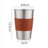 1/2ks stříbrný ušní speciální šálek na kávu Vysoce kvalitní 304 nerezová ocel PU kůže Vintage sada šálků na kávu Venkovní kancelářský domácí hrnek