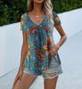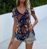 2023 Móda Léto Dámská Halenka Krátký rukáv Halenka s výstřihem do V Květinový potisk Košile Volné Neformální topy Elegantní Dámské Oblečení 25042