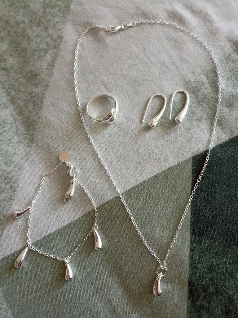 Docela pěkný set. Každá položka je slušně zabalena s vytištěným vzorkem. Budu ho nosit s láskou. Prsten je nastavitelný.