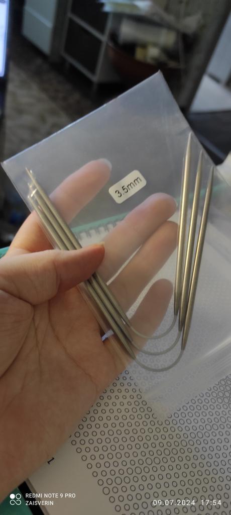 Objednávka trvala skoro měsíc. Objednal jsem 2,5 a 3,5 dohromady. Zatím jsem ho nepoužila, vůbec - teprve se chystám zvládnout pletení na kruhu na trojku. Vše ale vypadá velmi decentně, pletací jehlice jsou rovnoměrné, hladké, kabel je pevný na dotek a vypadá. Každá velikost pletacích jehel je zabalena v těsném sáčku na zip, vnější obal je také zatavený, takže vše dorazilo v perfektním stavu. Až zkusím uplést, přidám recenzi