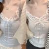 Dámský jednoduchý krajkový květinový žebrovaný top na šňůrku s výstřihem do V a ramínky