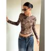 Módní abstraktní tištěné tenké síťované topy s dlouhým rukávem a výstřihem Spodní díl pro ženy Krátký krajkový top