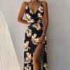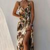 Móda Letní Potisk Dlouhé Šaty Ležérní Dámské V Výstřih Skládané Společenské Šaty Vysoký Rozparek Sexy Párty Y2k Župan Vestidos Oblečení 25680