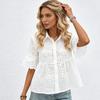 Móda Ležérní Bílá košile s výstřihem do V Ženy Krátký rukáv Elegantní Vintage Letní halenka Single Breasted Hollow Out Tops Blusas 26313