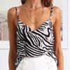 Letní top bez rukávů s volánovým límcem a zebřím potiskem Módní bílá saténová halenka Ležérní Sexy hedvábné tílko Elegantní mládežnické tílko 25639