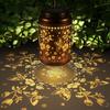 Solární lucerny Venkovní závěsné lucerny, Kovová dekorační lucerna s vyhloubeným motýlem, Vodotěsné LED dekorativní zahradní světlo