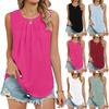 Dámská letní móda Jednobarevné skládané s kulatým výstřihem nařasený okraj panel Šifonový top bez rukávů