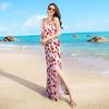 WTEMPO Women's Summer V-neck Dress Seaside Resort Print Beach Dress Bohemian Waist Dress Temperament Loose Backless Floral Dress