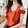 Letní nadměrná velikost dámské volné univerzální dámské triko Šifonová halenka s krátkým rukávem a výstřihem do V