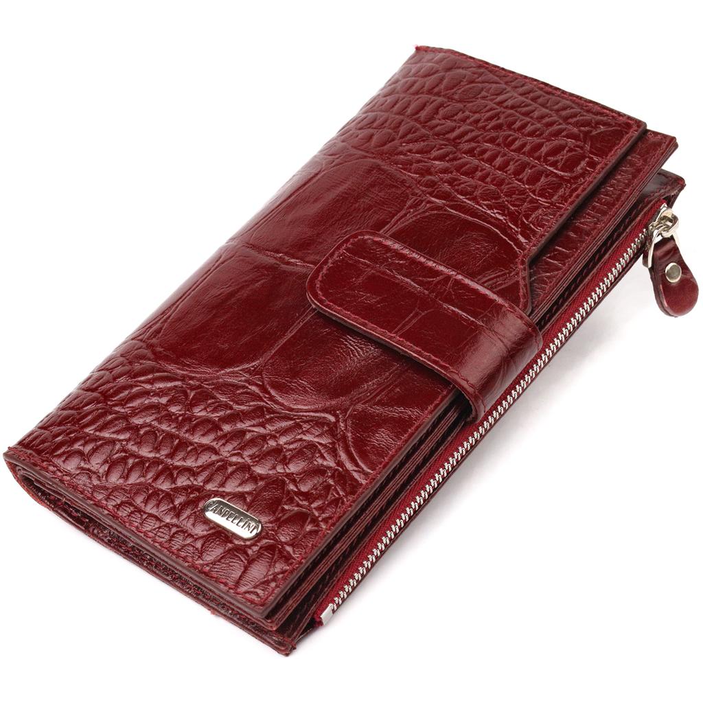 Prostorné vertikální dámské kočky z pravé kůže s ražbou krokodýla CANPELLINI Wallet 21644 Burgundy