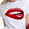 Červené rty s potiskem Trička pro ženy Módní klub Sexy Tričko na rty Polibkové rty Legrační léto Tričko s krátkým rukávem Dámské tričko