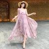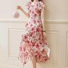 Floral suspender dress female sweet wind romantic irregular chiffon short sleeve long skirt